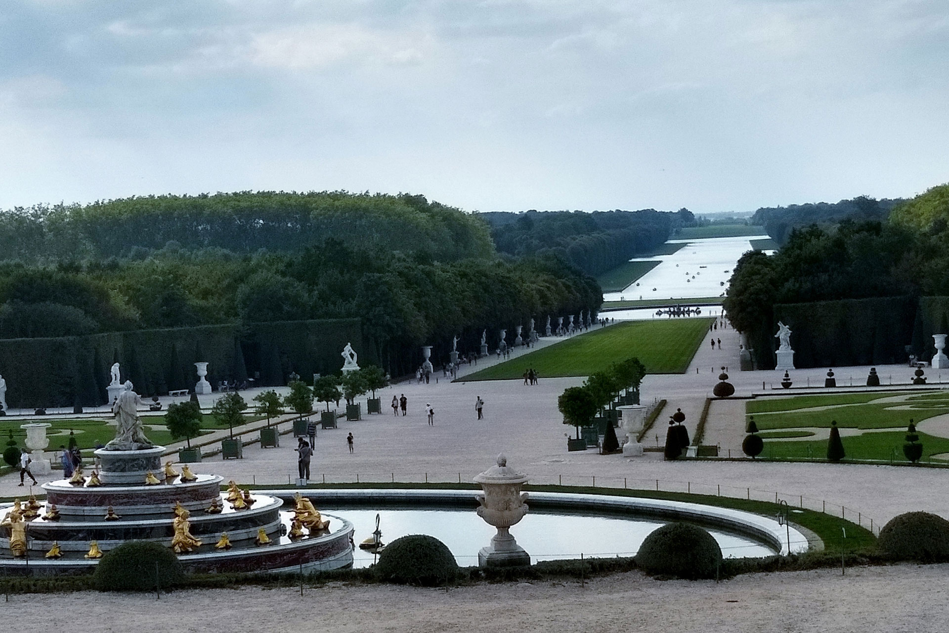 Doch wie werden sie erzeugt? Ein beliebtes Mittel sind Sichtachsen: Geradlinig angelegte Schneisen, die den Blick auf den sogenannten ‚Point de vue‘ richten, also den Blickpunkt. Oft handelt es sich hierbei um ein prächtiges Gebäude oder einen Pavillon, einen Brunnen oder ein markantes Gehölz, das in den Mittelpunkt der Aufmerksamkeit gerückt werden soll.