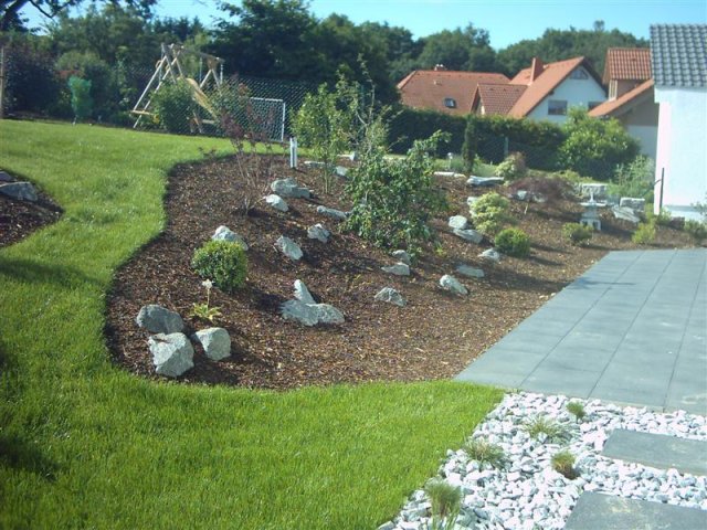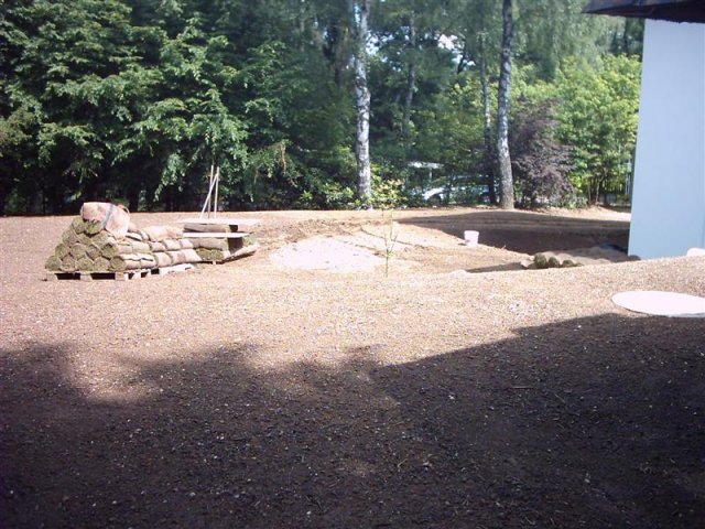 ein lockerer Terrassen-Belag aus verschiedenen Größen