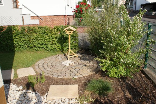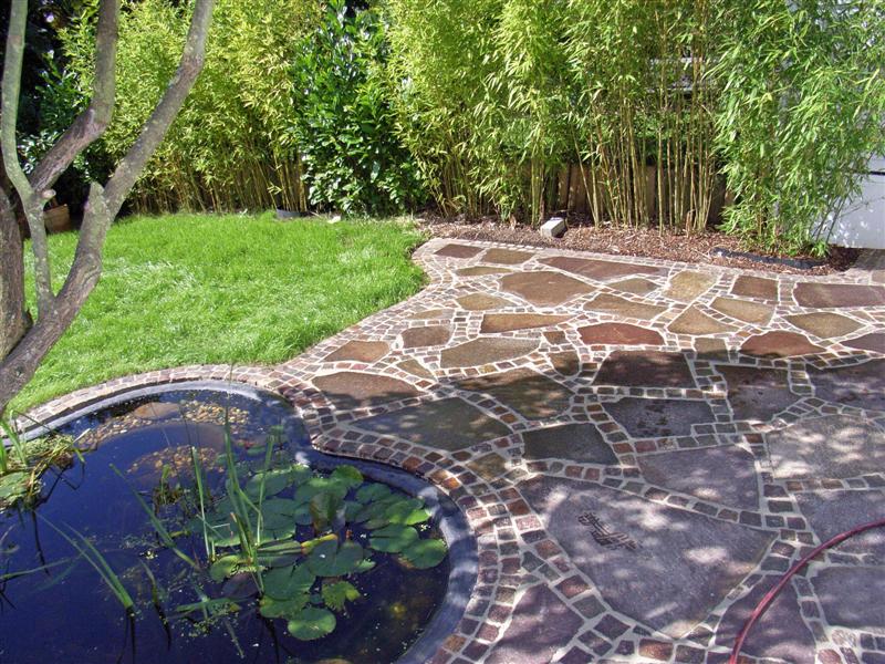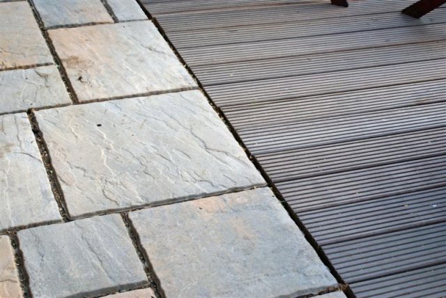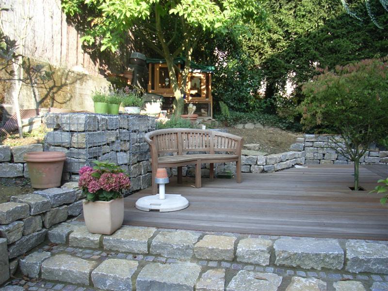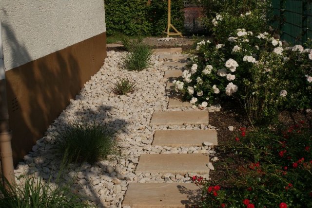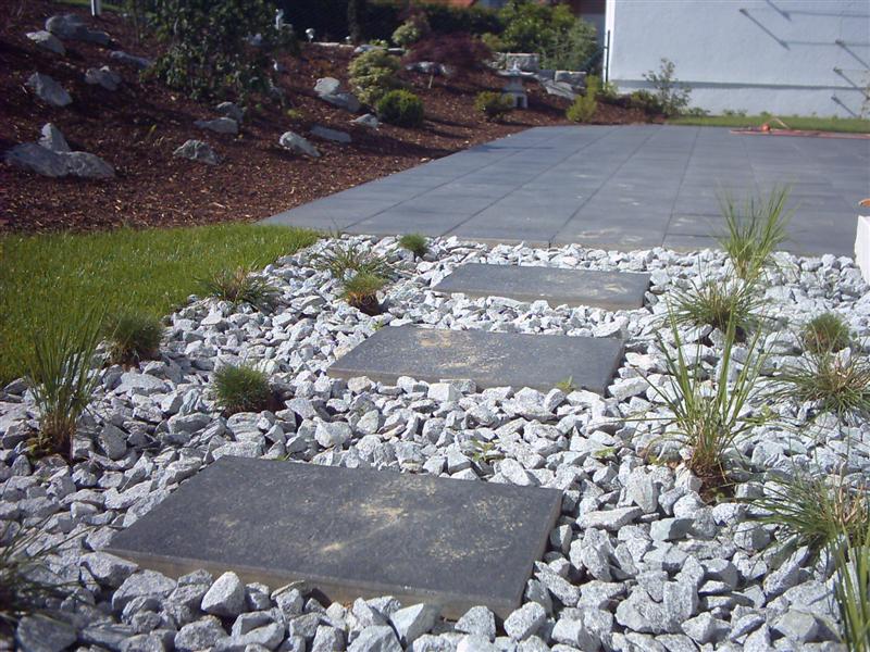 ein lockerer Terrassen-Belag aus verschiedenen Größen