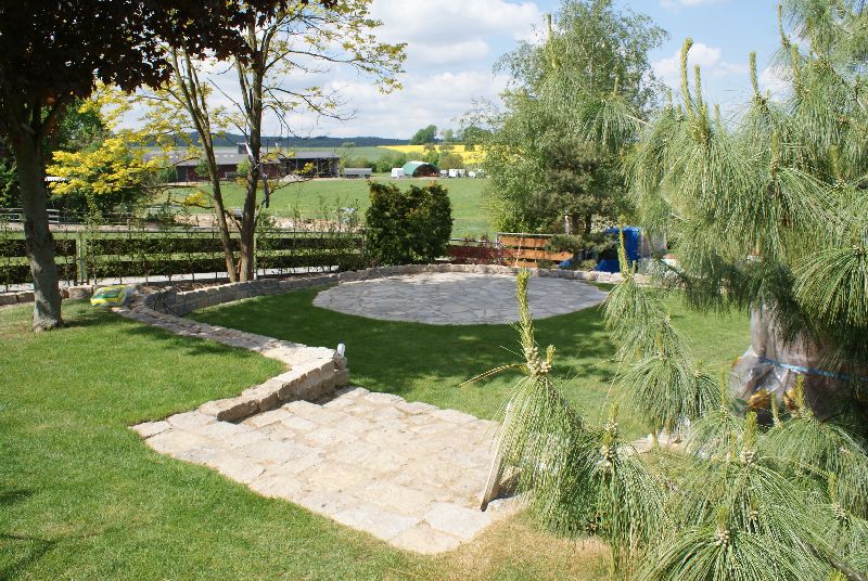 ein lockerer Terrassen-Belag aus verschiedenen Größen